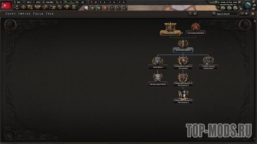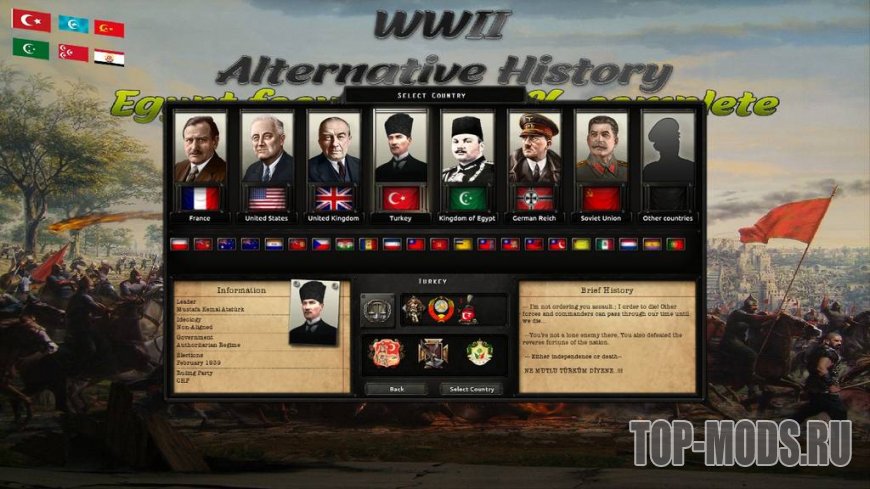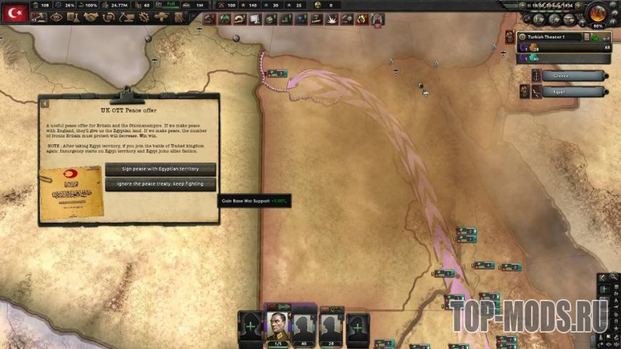 Данный мод направлен на улучшение пользовательского опыта при игре за Турцию или Египет. Эти страны получили новые фокусы и возможность кардинально перекроить геймплей при игре за них.