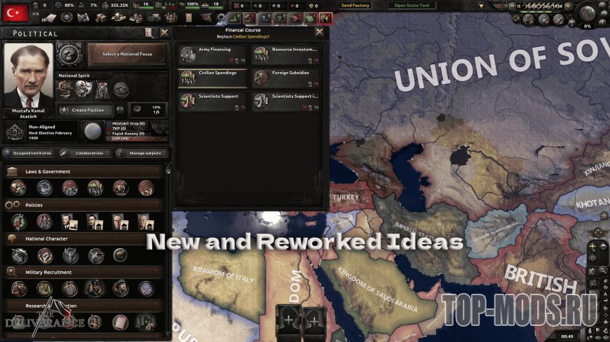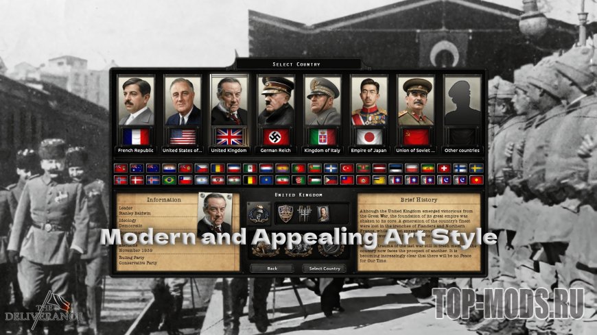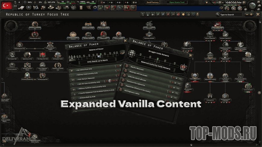 The Deliverance» поддерживает оригинальный игровой процесс, обеспечивая более быстрый и сбалансированный игровой процесс, а также новые механики, такие как инструменты для управления штатами и странами, которые расширяют и обогащают базовую игру.