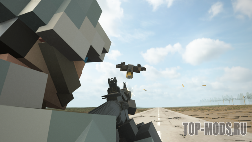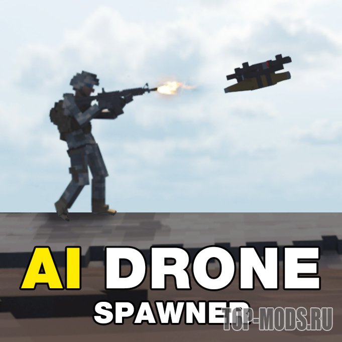 Это инструментальный мод для создания ИИ-дронов с FPV-управлением. Дроны патрулируют зону, ищут цели и начинают преследование при обнаружении.
