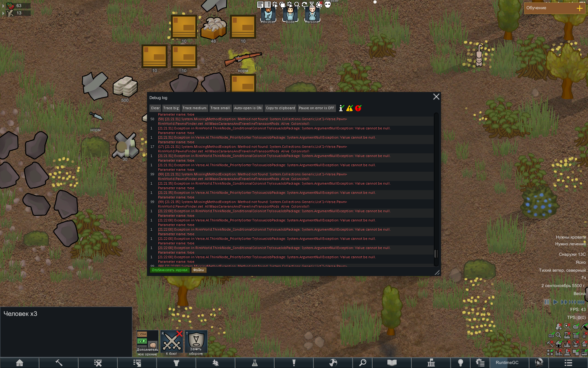 Помогите, играю с модами, в один момент все колонисты перестали что-либо делать сами, просто бесконечно слоняются по карте и сами не выполняют никакую работу. Даже если поставить в расписании только работу сами ничего не делают. Если назначить выполнение вручную, то сделают только то, что назначил, а потом опять бесконечно гуляют. Как снимаю с паузы бесконечно повторяется один список ошибок