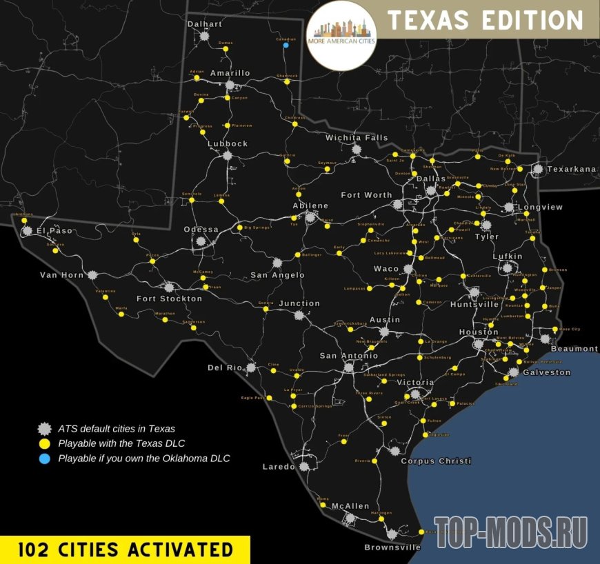Карта «More American Cities (Texas)» версия 1.2 для American Truck Simulator (v1.57.x)
