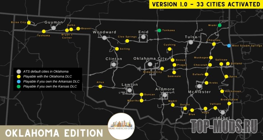 Карта «More American Cities (Oklahoma)» версия 1.4 для American Truck Simulator (v1.57.x)