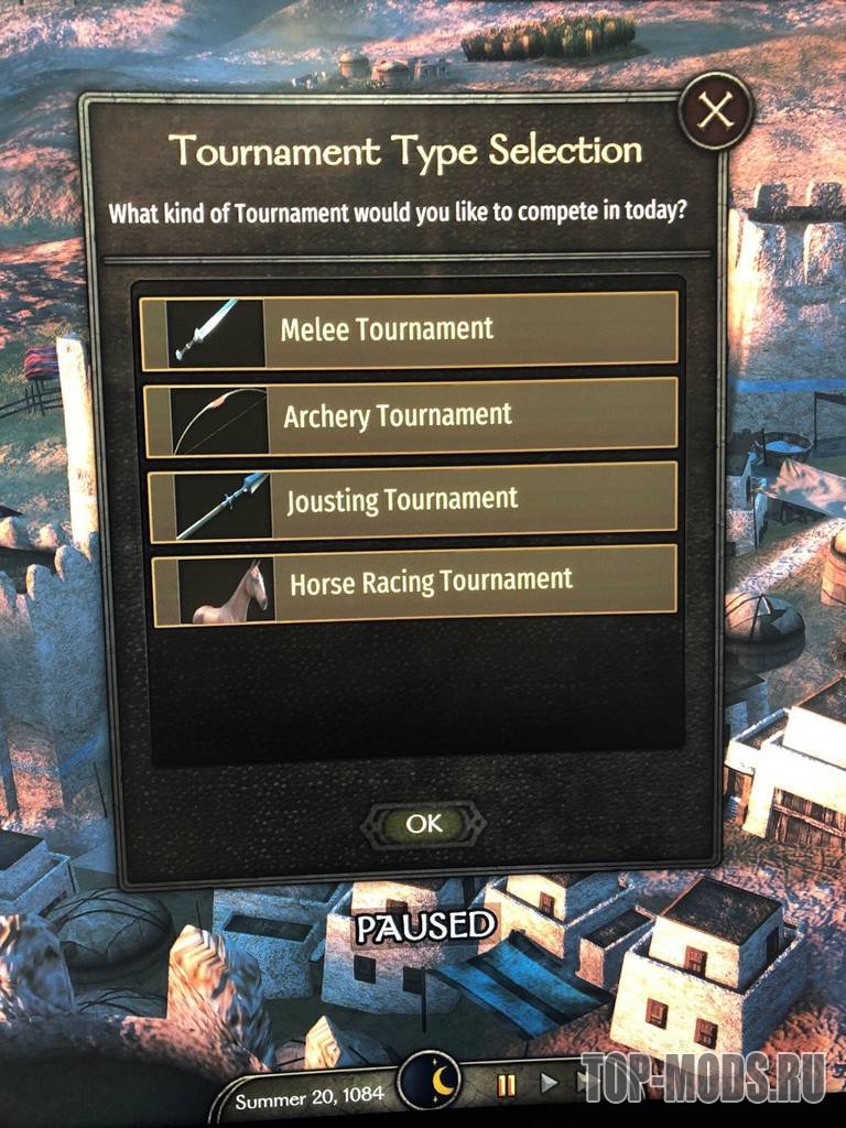 Модификация включает получение полного количества опыта на турнирах, как это было в Warband.