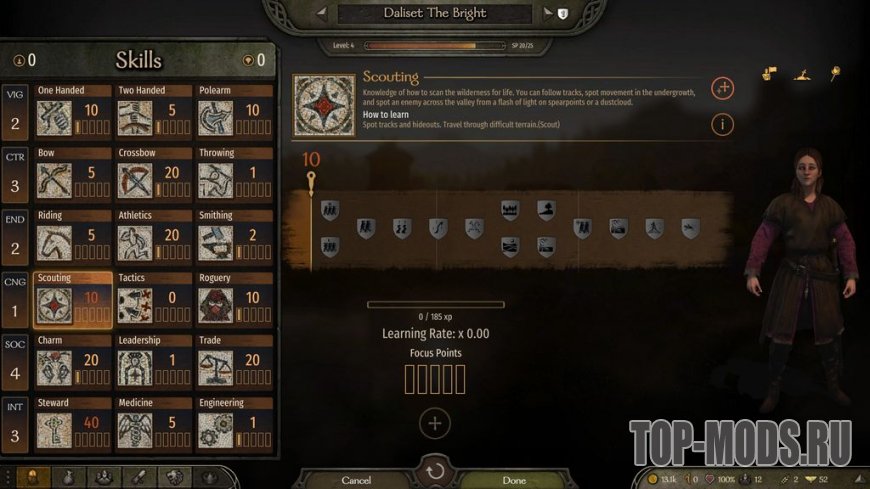 Новая прекрасная спутница по имени Алиена для Mount And Blade 2: Bannerlord. Она имеет маленький уровень и слабые способности, так что вы можете ее прокачать так, как хотите сами.