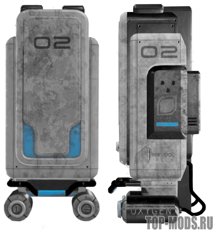 - Рюкзак Oxy.Gen : 2 слота (пополнение баллонов O²) + 2 слота (обычные предметы) + Встроенный дыхательный аппарат