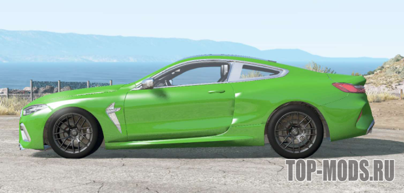 BMW M8 для BeamNG.drive. Модификация добавляет модель двухдверного купе спортивного типа.