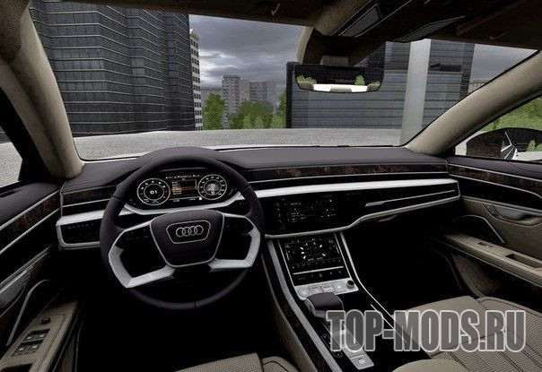 Немецкий автомобиль представительского класса Audi A8 4.0 TFSI quattro 2018 добавляет данный мод в игру City Car Driving.