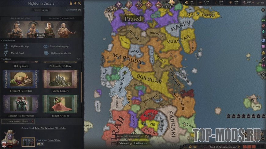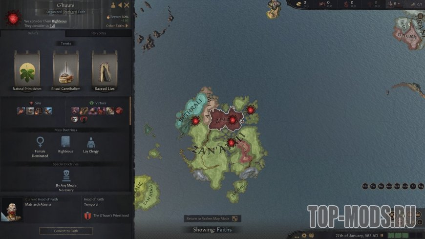 **Культура и верования** тщательно изучены и разработаны с учетом ваших предпочтений и индивидуальных особенностей. История, созданная вручную, и контекстуальное повествование позволят вам взглянуть на мир с точки зрения разных правителей. Легендарные артефакты, такие как "Ледяная скорбь" и "Молот Рока", будут оживлять мир вокруг вас.