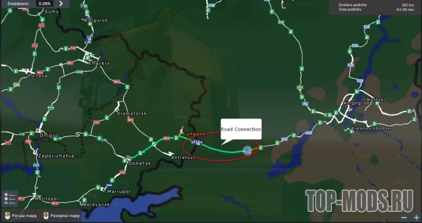 Дорожное соединение между Луганском (ROEX 4.3) и отдаленными окрестностями города Краснослободск (RusMap 2.51)