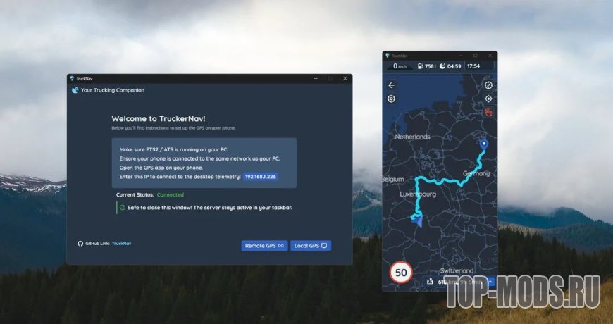 1. Запустите приложение TruckNav, чтобы увидеть свой IP-адрес и запустить телеметрию.