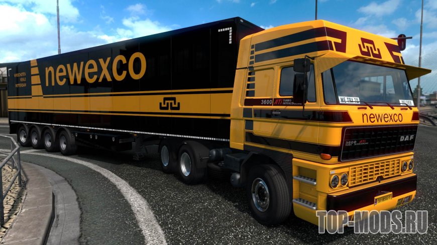 Скин Newexco для DAF F241 и собственного трейлера. Мод основан на покраске реального грузовика. Подходит только для кабины D.