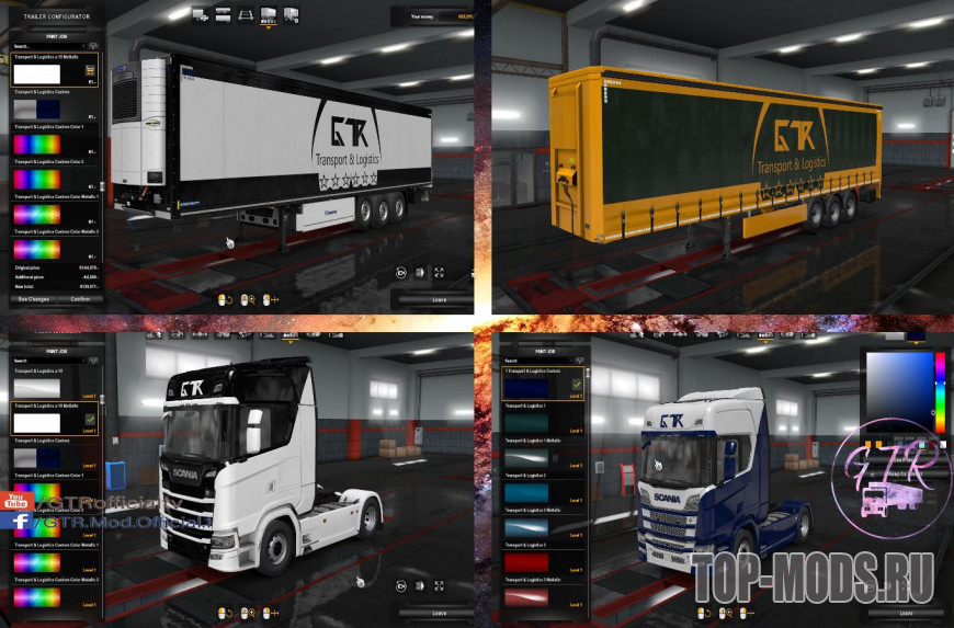 Скин "Transport & Logistics" для своего стандартного прицепа, для своего прицепа Krone и грузовиков Scania S & R 2016 NG.