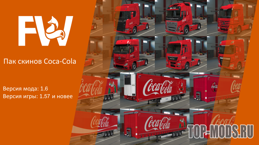 Скин «Пак скинов Coca-Cola от Mr.Fox» версия 1.6 для Euro Truck Simulator 2 (v1.57.x)