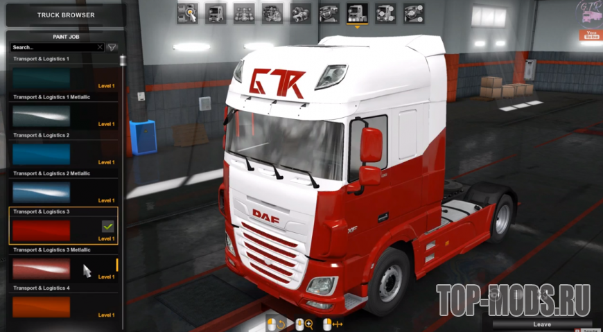 Скин "Transport & Logistics" для своего стандартного прицепа, своего прицепа Krone и грузовика DAF XF Euro 6.