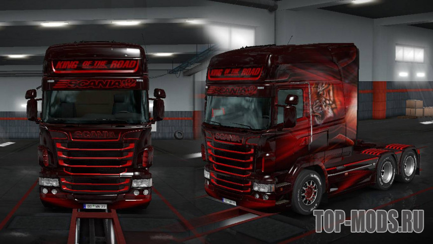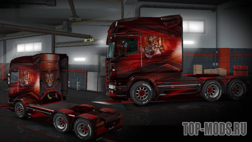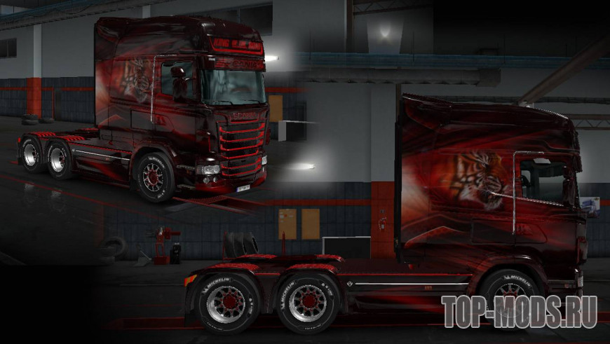 Скин для кабины Topline_EX в красной расцветке тигр для Scania R&Streamline modifications by RJL.