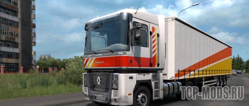 Мод добавляет в игру Euro Truck Simulator 2 скин из игры Дальнобойщики 2 для дефолтного грузовика Renault Magnum. Базовый цвет настраивается.