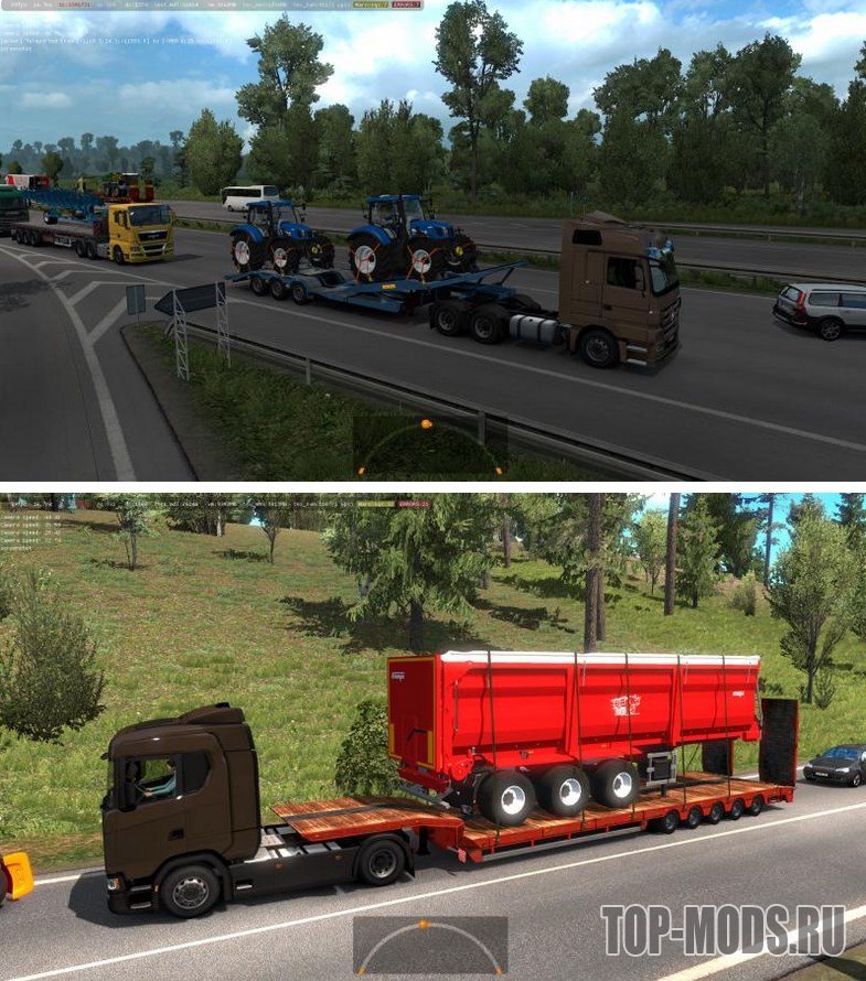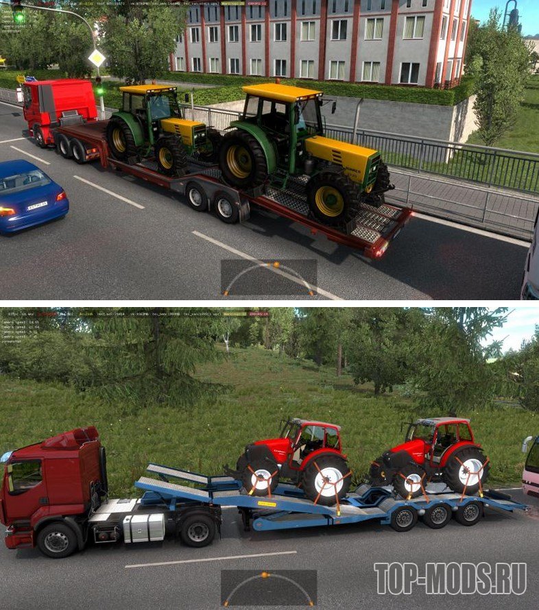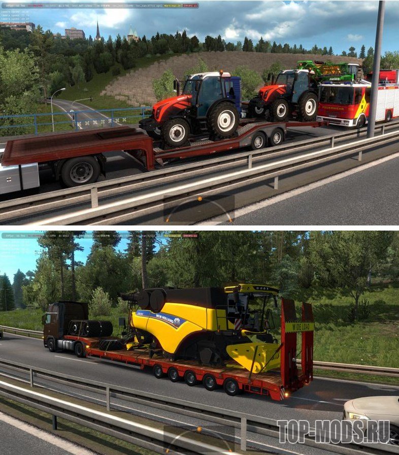 Мод «Высококачественные прицепы с сельскохозяйственной техникой в трафик» версия 2.2.1 для Euro Truck Simulator 2 (v1.35.x)