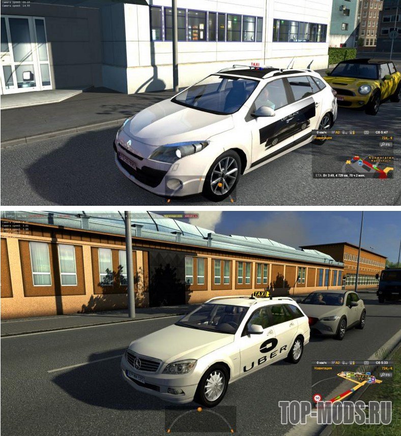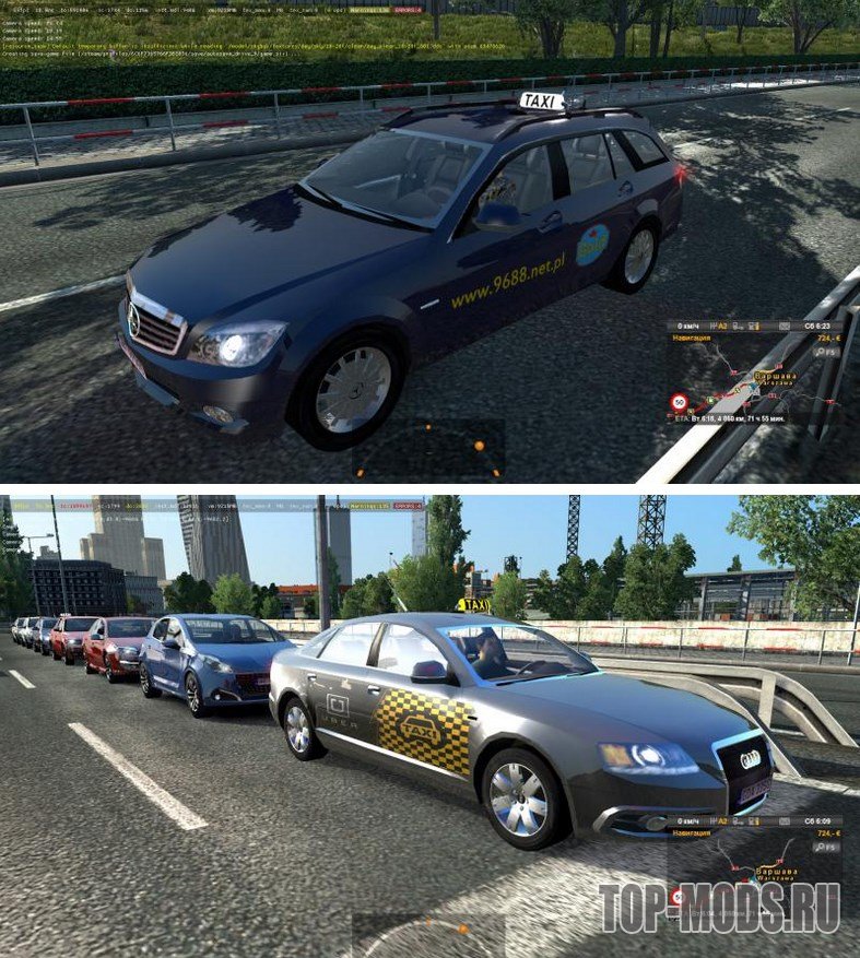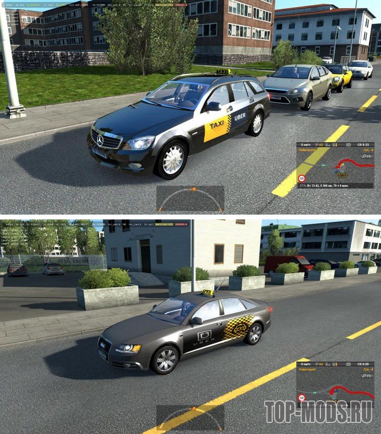 Мод добавляет в трафик игры Euro Truck Simulator 2 машины такси.