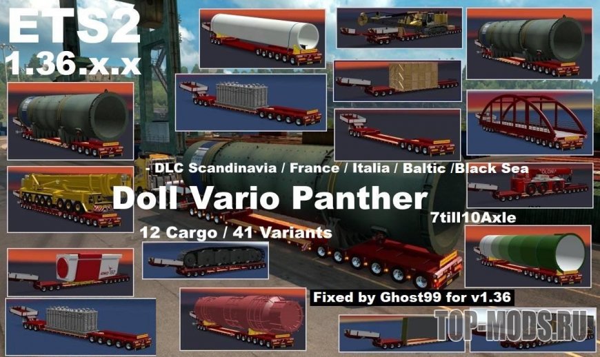 Мод «Doll Vario 7-10Axles Pack 12 Cargos» версия 5.5 для Euro Truck Simulator 2 (v1.36.x)