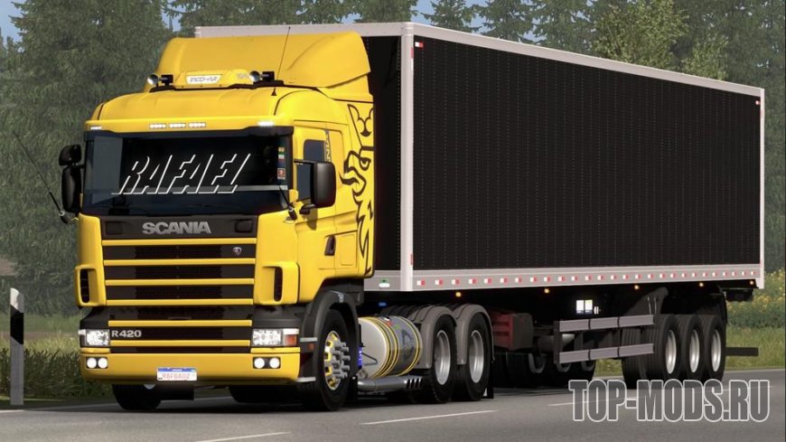 Даааа тюнинг впечатляющий, проверено!!! v1.36.2.24 как народ видимо любит эти СКАНИИ! )), лично мне, тоже, тюнинг понравился)) и ВСЁ… на этом ВСЁ !!.. Скинов, можно сказать и нет их… по салону… ну обычная СКАМЬЯ! я наделся увидеть новую цифровую приборку или хороший большой монитор на jps, дабы вдохнуть в грузовик что то новое, технологичное )))) а нет !((( стандартный движок для скамьи 750 л/с ну и + заоблачный тюнинг ( внешний ) и главная ложка дёгтя в бочке мёда это, отсутствие звука двигателя в кабине! перепробовал ВСЁ и чистый профиль, хотя не стоило, мод того не заслуживает и приоритет мода менял на наивысший! толку 0! и ко всей этой " прелести", в комплекте ещё 2 ретро-грузовика из семейства СКАНИИ! К ЧЕМУ? Я НЕ ПОНЯЛ!… что это, нынешний маркетинг? — возьмите грузовик а это, в нагрузку !))). Мод, конечно найдет своего потребителя, но лично я, МИМО !