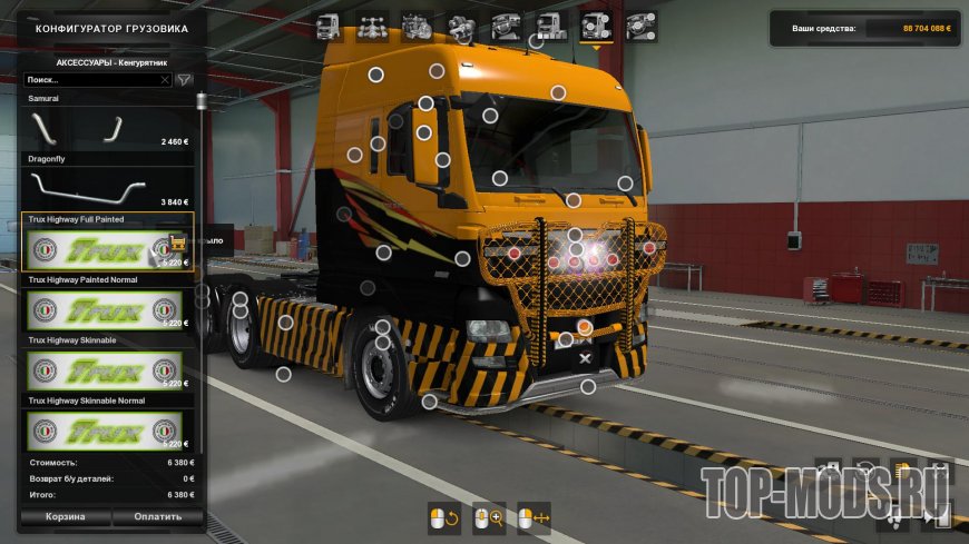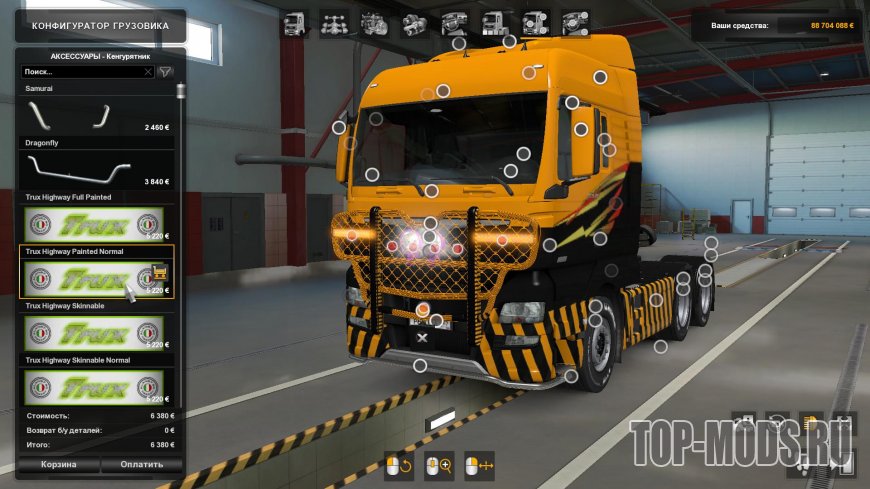 Мод добавляет новый кенгурятник для грузовиков: стандартного MAN TGX Euro6 и MAN TGX от Madster.