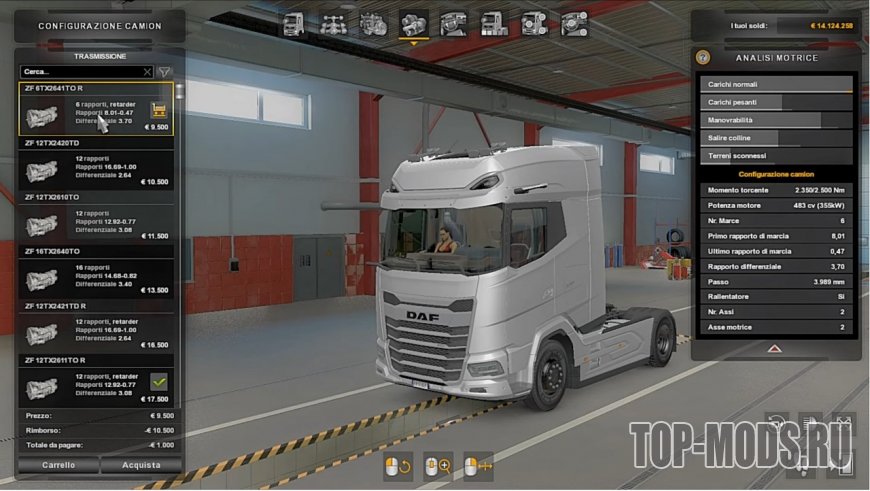 Мод добавляет новую 6 ступенчатую КПП с ретардером для грузовиков DAF XG 2021