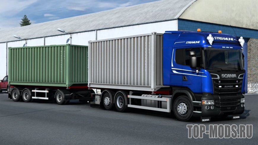 Модификация добавляет шасси-контейнеровоз для Scania RJL и новый прицеп-контейнеровоз Ekeri. Шасси для Scania RJL имеет два варианта окраски, базовый тюнинг, возможность установки контейнера на сервисе. Прицеп-контейнеровоз Ekeri полностью автономен и построен с нуля, имеет два цвета шасси, небольшой базовый тюнинг и поддерживает установку контейнера при взятии заказа.