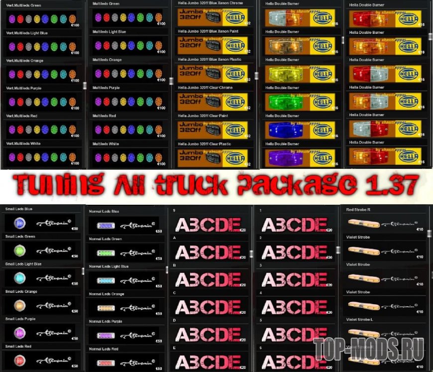Мод «Tuning All truck package» версия 28.10.23 для Euro Truck Simulator 2 (v1.48.x)