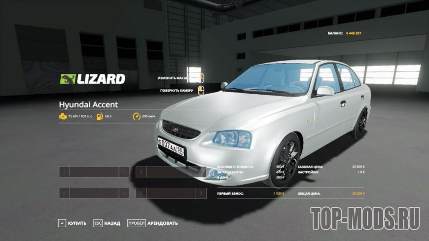 Мод легкового автомобиля Hyundai Accent для игры Farming Simulator 2019.