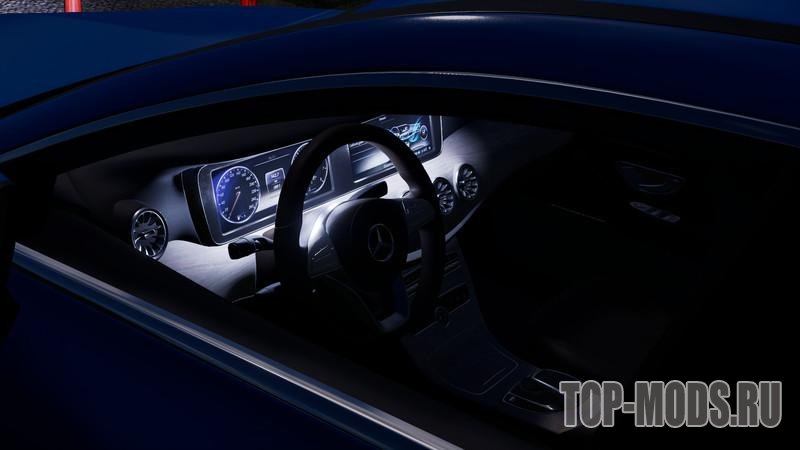 Красивый седан Мерседес для зажиточных фермеров с реалистичной светотехникой.