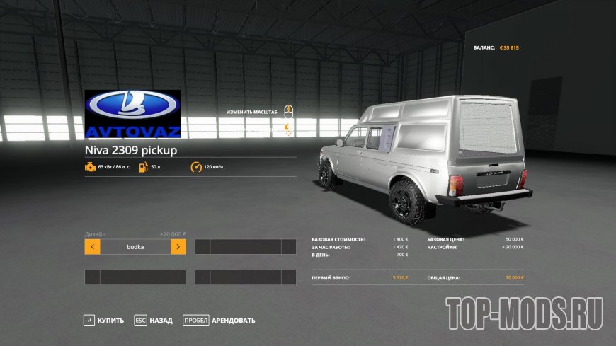 Конверт отечественного внедорожника в кузове пикап.
