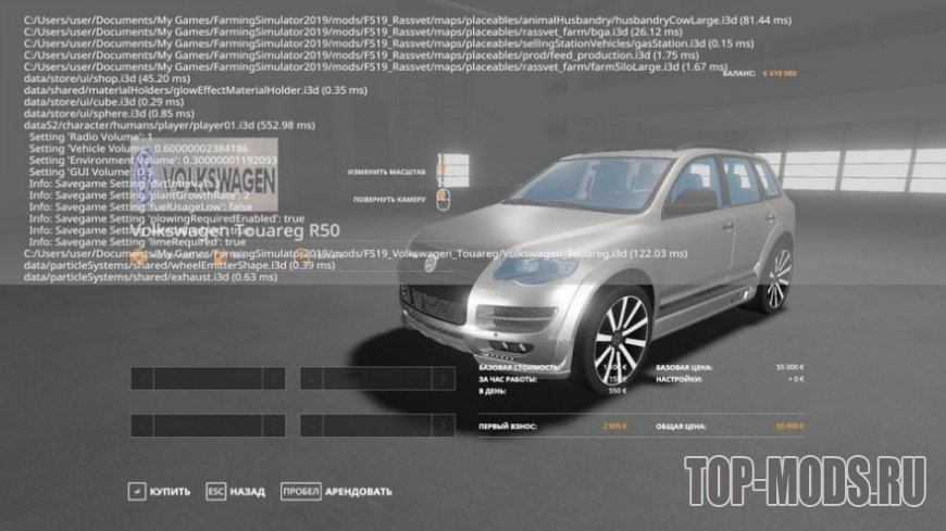 Среднеразмерный кроссовер Volkswagen Touareg R50 для Farming Simulator 2019.