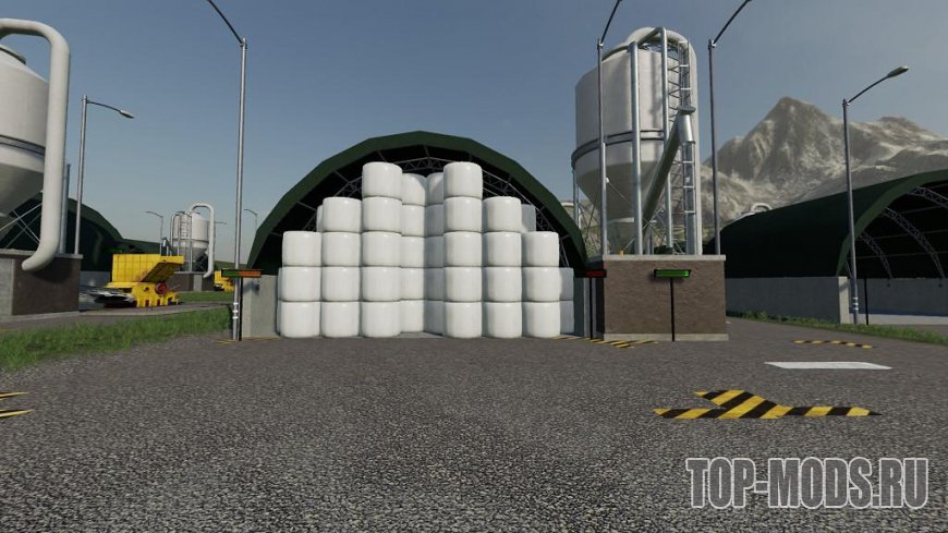 Пак содержит хранилища для тюков. В зданиях также имеется измельчитель тюков с объемным хранилищем.
