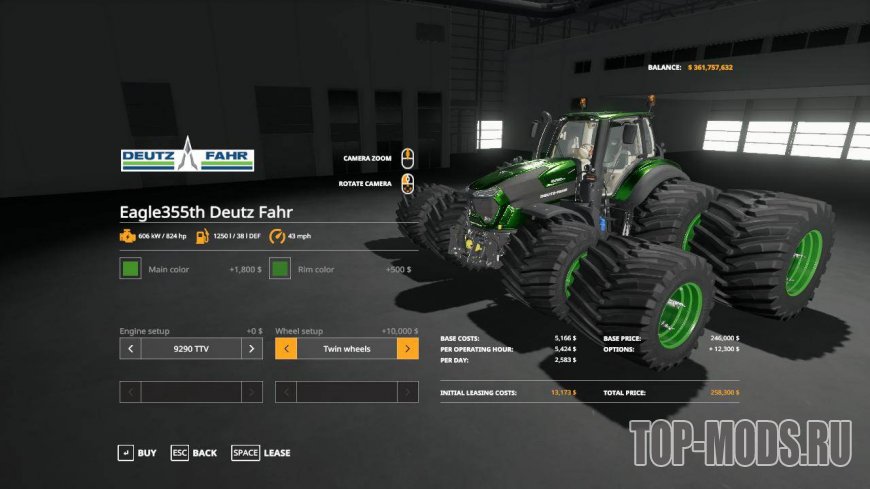 Тяжелый трактор Eagle 355th Deutz Fahr для игры Farming Simulator 2019.
