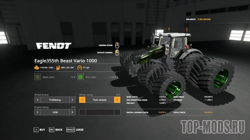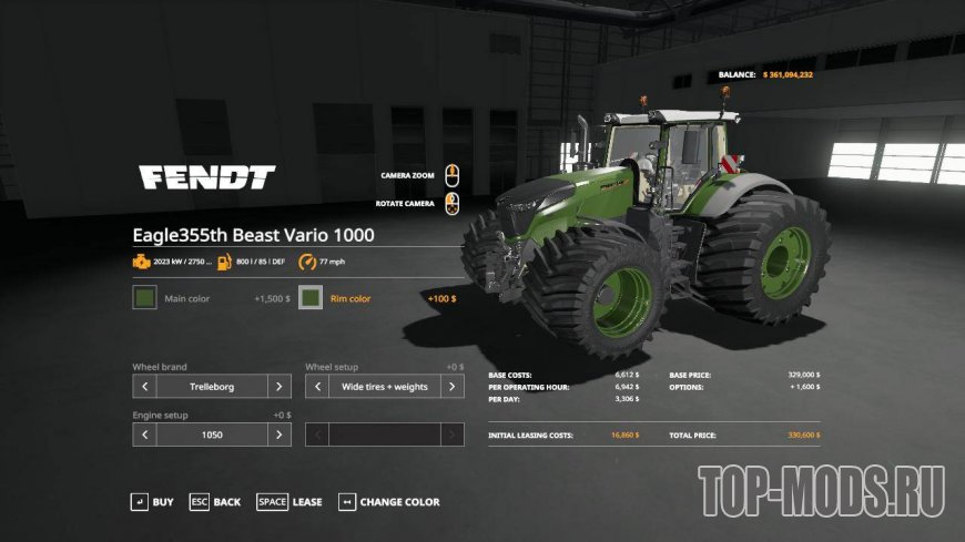 Огромный и сверхмощный трактор Eagle 355th Beast Vario 1000 для FS 19.
