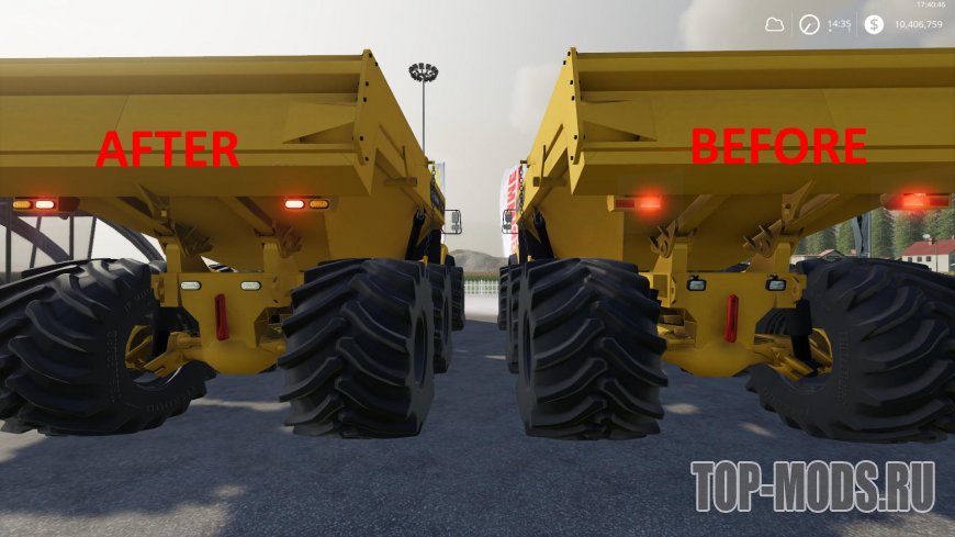 Сочлененный самосвал, приспособленный к высоким нагрузкам. Имеет рабочую гидравлику при подъеме кузова.