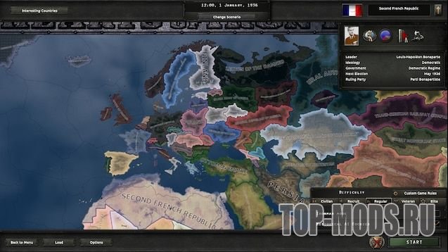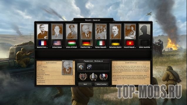 Этот мод включает в себя новый стартовый сценарий, новые страны и национальные фокусы.