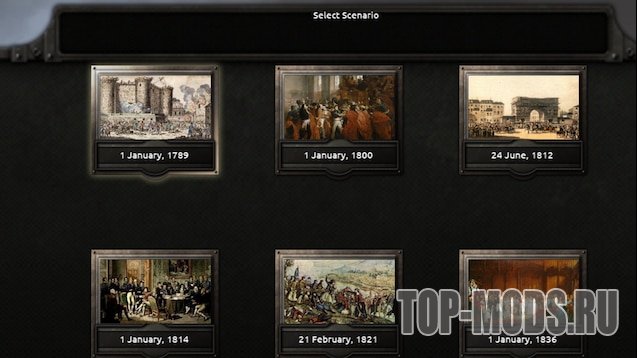 Франция, Пруссия и Россия — самые доступные для игры страны. Остальные государства, включая Великобританию, Испанию, Швецию, Австрию, США, Нидерланды, Сардинию-Пьемонт, Бельгию, Люксембург и Баварию, находятся в разработке. Они доступны в период с 1789 по 1815 годы.