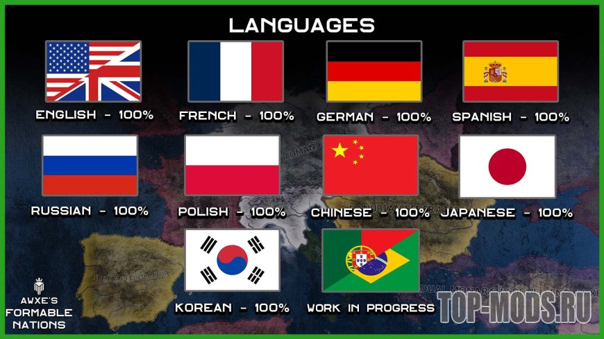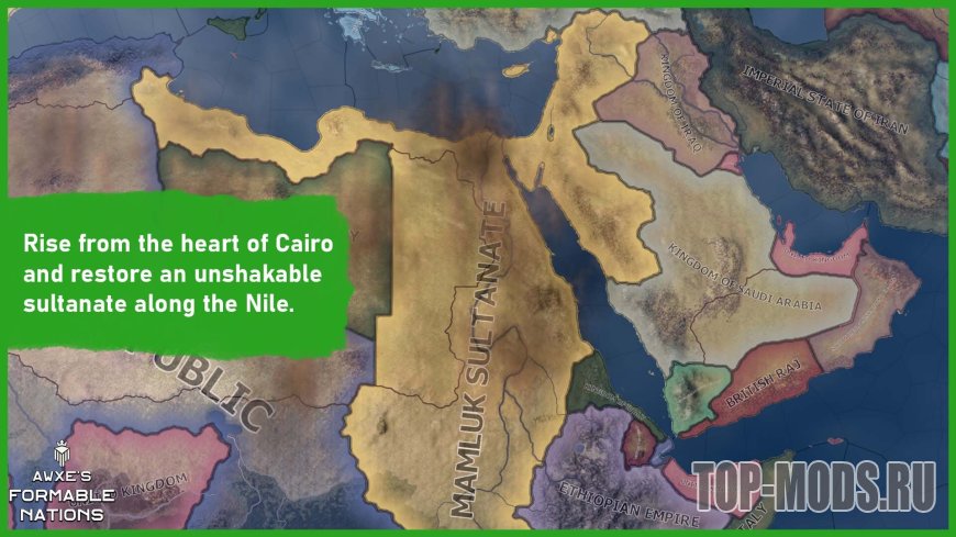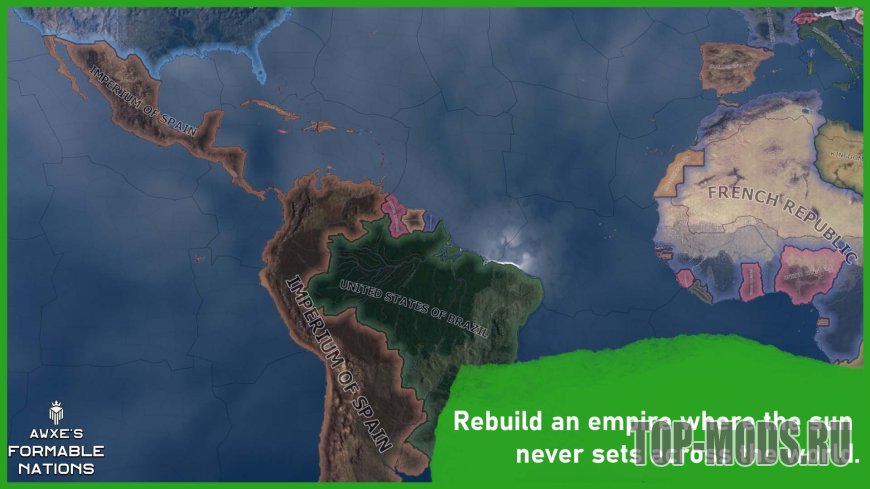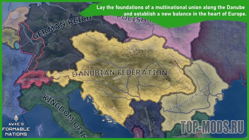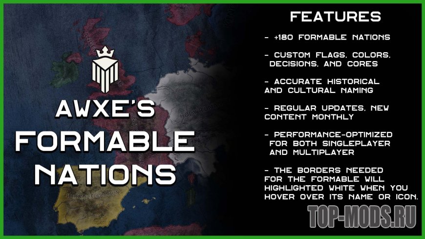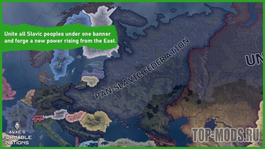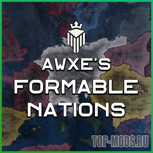 Это хорошо известный и любимый многими мод Formable Nations, полностью переработанный. Он расширен, переведен, оптимизирован и дополнен совершенно новым контентом, которого раньше не было.