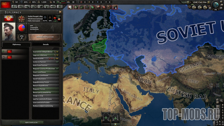 Это мод альтернативной истории, где Советский Союз выиграл польско-советскую войну в 1920 году, и Советам удалось создать дружественное правительство в Польше под руководством Дзержинского. Когда Ленин умер, Бухарин сумел прийти к власти в качестве председателя Коммунистической партии Советского Союза. Теперь Красная Армия должна готовиться идти дальше на запад, чтобы продолжить план Ленина!