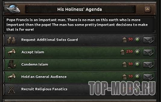Вы когда-нибудь думали, как весело играть в роли Папы Римского, а затем стать халифом? С этим модом для HoI 4 вы сможете превратить цитадель католического христианства в Халифат.
