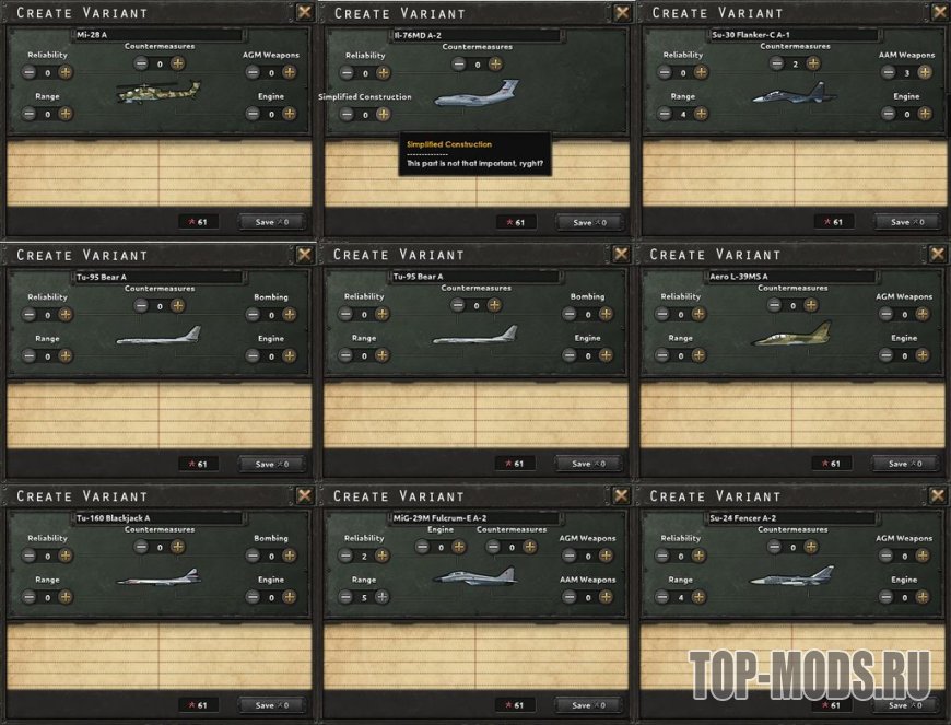 -Апгрейды контрмер (противовоздушная оборона +5%, 5 уровней, небольшое увеличение стоимости за каждый уровень)