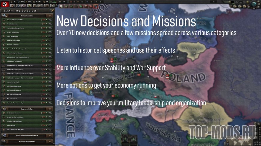 Большая сборка различных модификаций для Hearts of Iron 4, которая призвана сделать практически все аспекты игры более интересными.