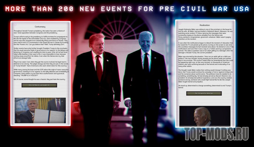 Соединенные Штаты разваливаются под тяжестью своих противоречий. Более 40 новых событий погружают игроков в самое сердце американского политического ада, где пандемический хаос, экономический кризис и социальные беспорядки сталкиваются с эго, идеологией и отчаянием лидеров. Пройдите путь по стране, разрывающейся на части.