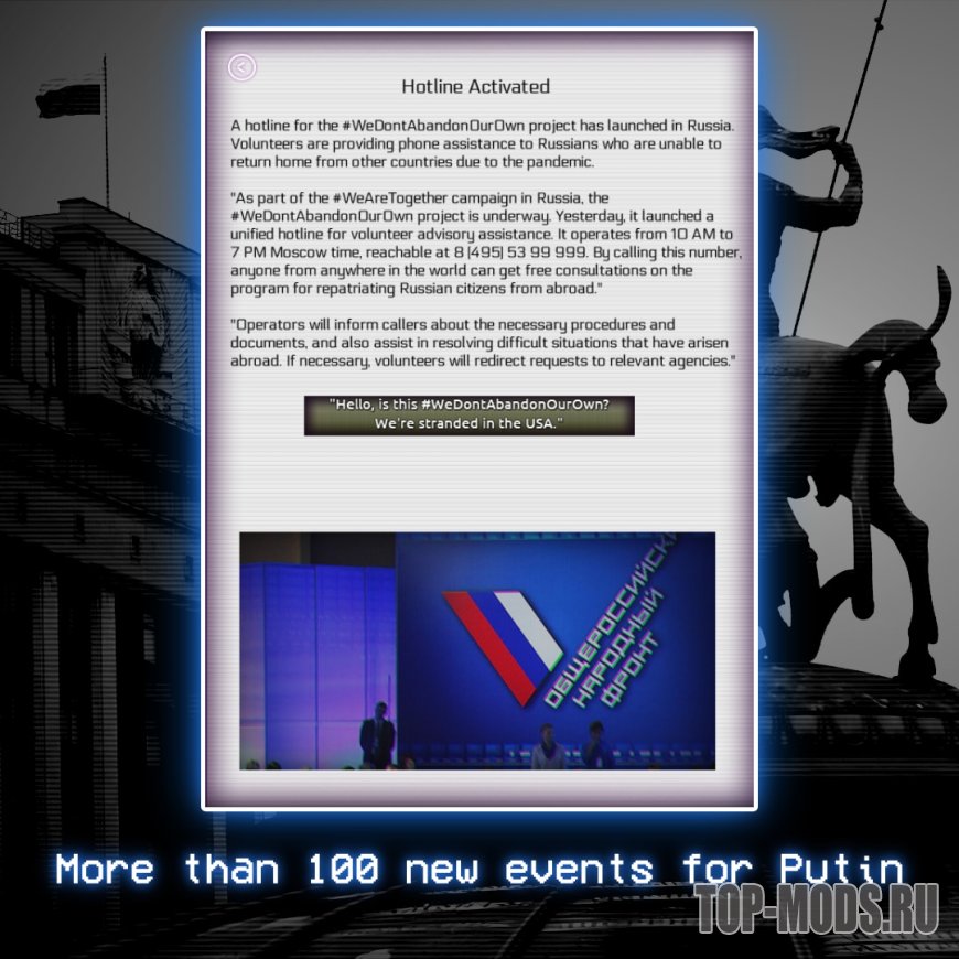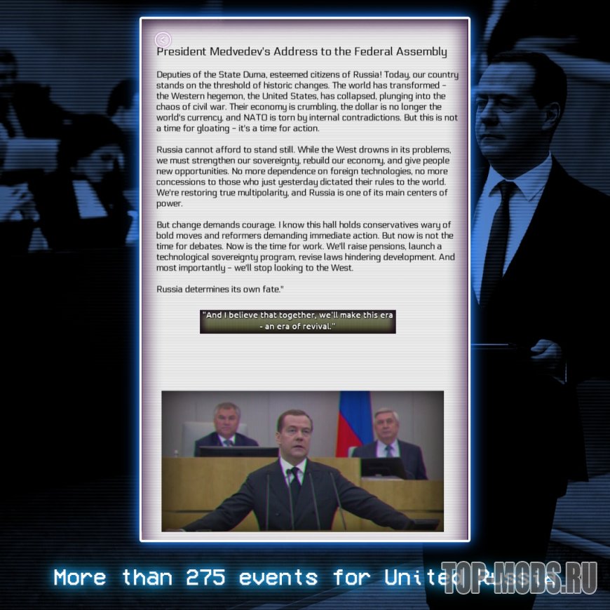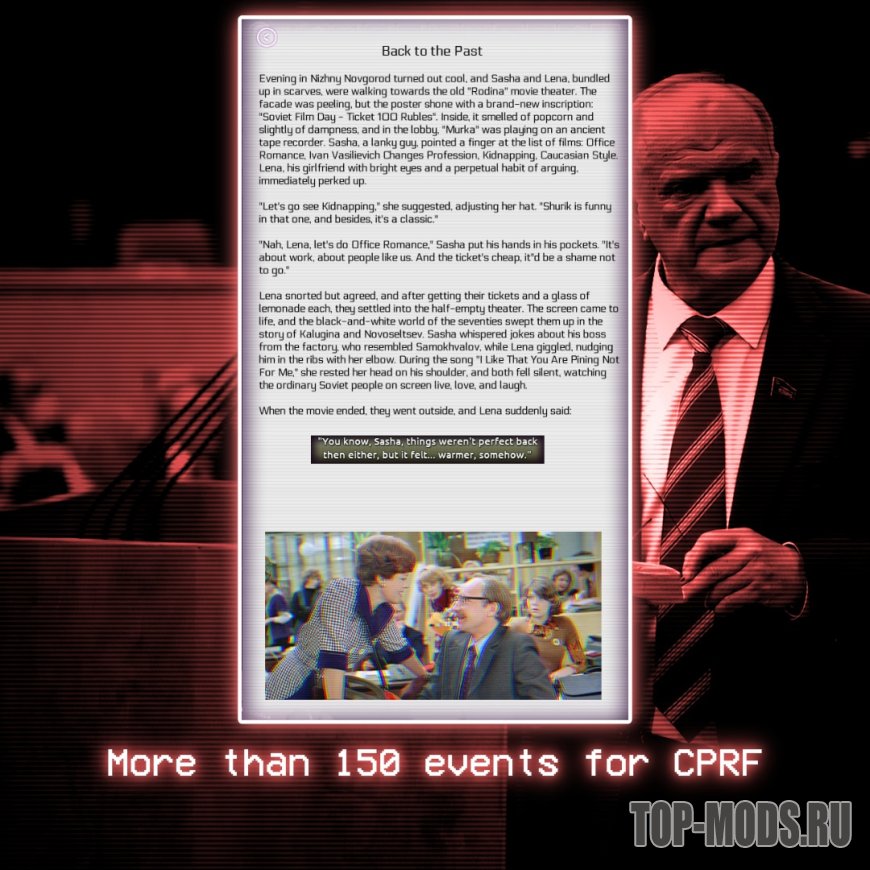 Более 670 событий погрузят вас в сложный мир России - страны, которая борется со своим советским прошлым и строит новое, уверенное будущее. Разберитесь в запутанной паутине политических маневров, кипящего социального недовольства и возрождающейся национальной гордости, пока Кремль сжимает свою хватку.