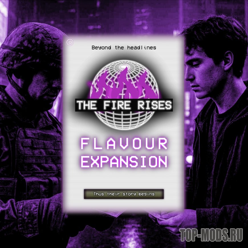 The Flavour Expansion еще глубже погружает игроков в расколотую реальность вселенной The Fire Rises, добавляя более 800 событий, которые наполняют содержанием три ключевые фракции: разваливающиеся Соединенные Штаты, восходящую дивизию Атомваффен и Российскую Федерацию.