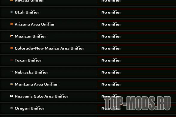 • Логически отсортированное меню настроек стран (географический порядок: Калифорния → Невада → Юта → Аризона → Мексика → ... → Манитоба)