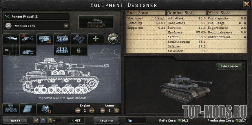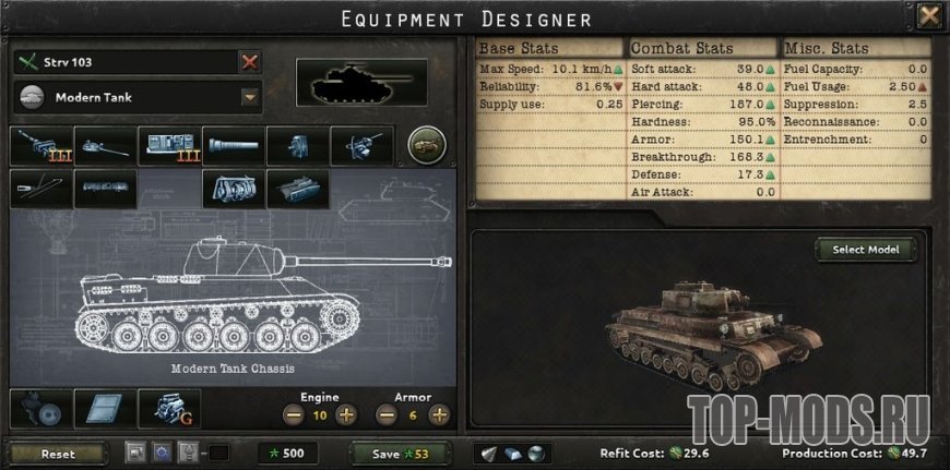 Отличный мод для Hearts of Iron 4, который расширяет возможности конструирования танков и бронемашин.