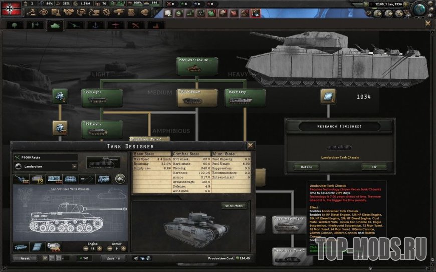 Исследуйте шасси крейсерского танка в 1943 году после шасси сверхтяжелого танка и создайте бегемотов, о которых вы всегда мечтали.