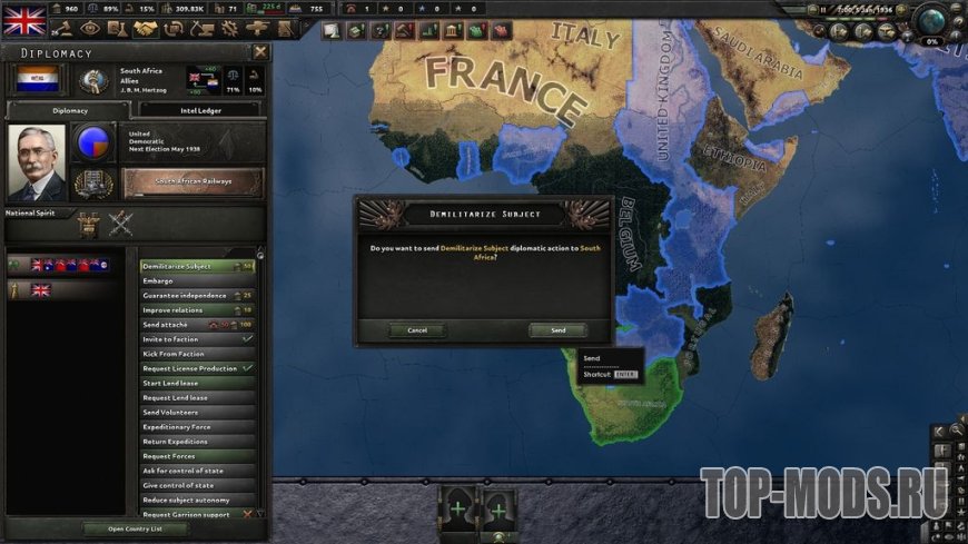 Этот мод добавляет на вкладку дипломатии опцию де- и ремилитаризации ваших подданных.